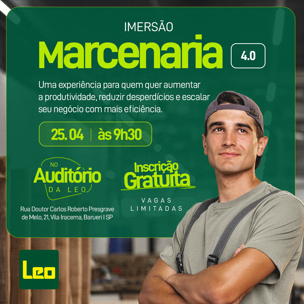 Tudo conectado ao maior ecossistema da marcenaria: estoque, serviços, prazos e condições especiais direto da Leo.